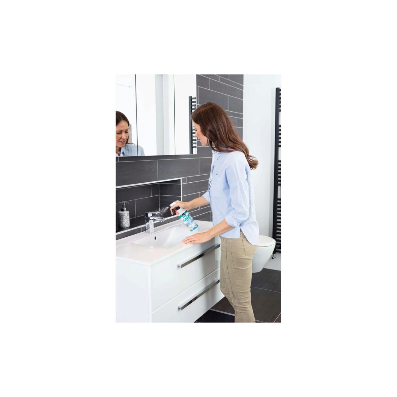 - Pulverizați nediluat pe suprafața de curățat și lăsați să acționeze câteva secunde. În cazul petelor persistente de calcar lăsați să acționeze câteva minute însă nu mai mult de 5 minute.