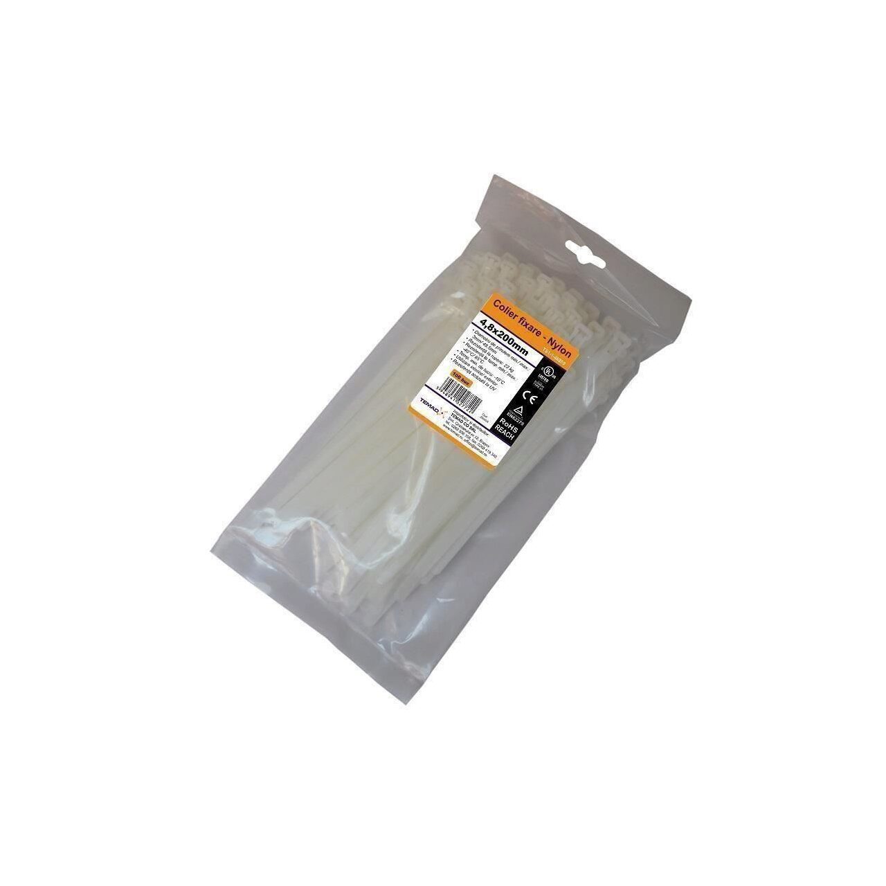 Colier de fixare din nylon, cu dimensiunea de 4,8 x 200 mm, ambalate în pungi de 100 buc.