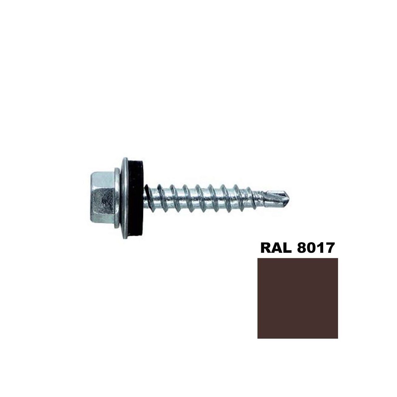 Șurub autoforant STARKFIX, cu cap hexagonal și șaibă EPDM, pentru metal, 4,8x25, RAL8017, 250buc