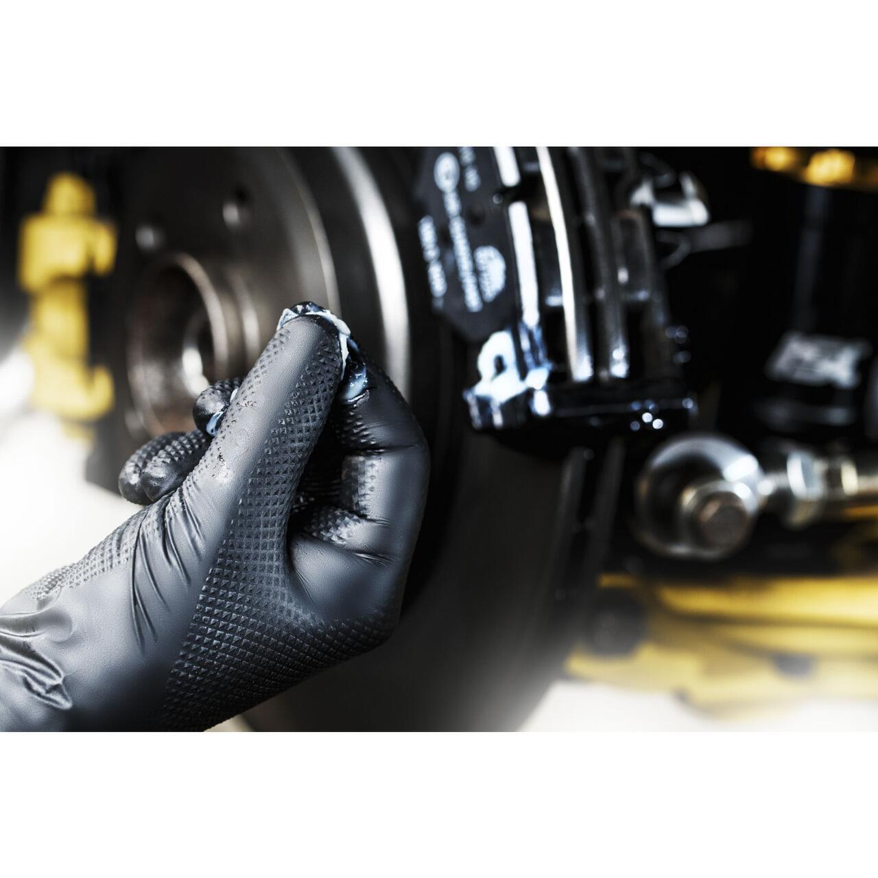 - Manuși de unică folosință, nepudrate din nitril cu o textura revoluționară diamantată, ce asigură o priză foarte bună și stabilă când se lucrează în condiții unsuroase sau umede.