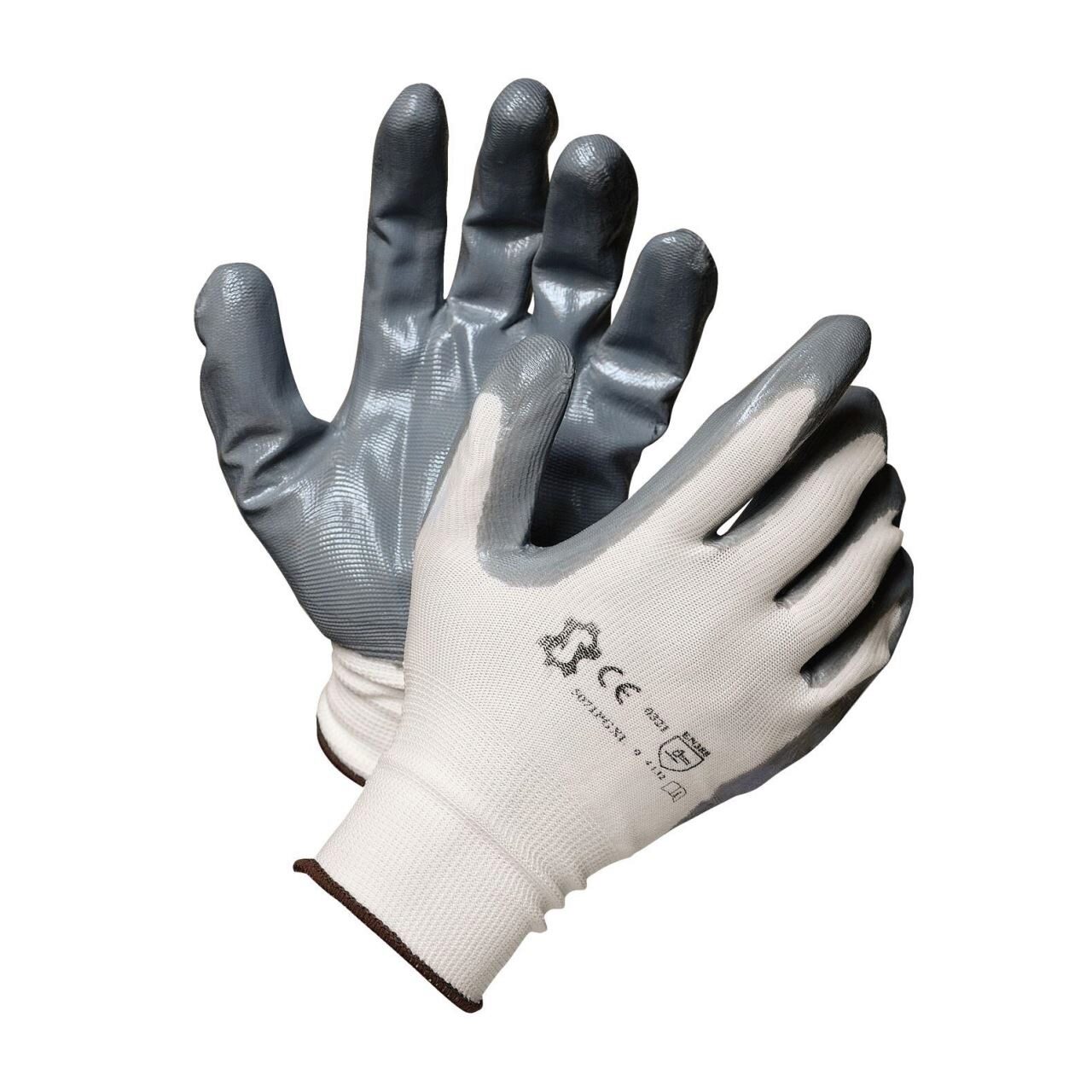 Mănuși tricotate din poliester cu palma și degetele imersate în nitril.