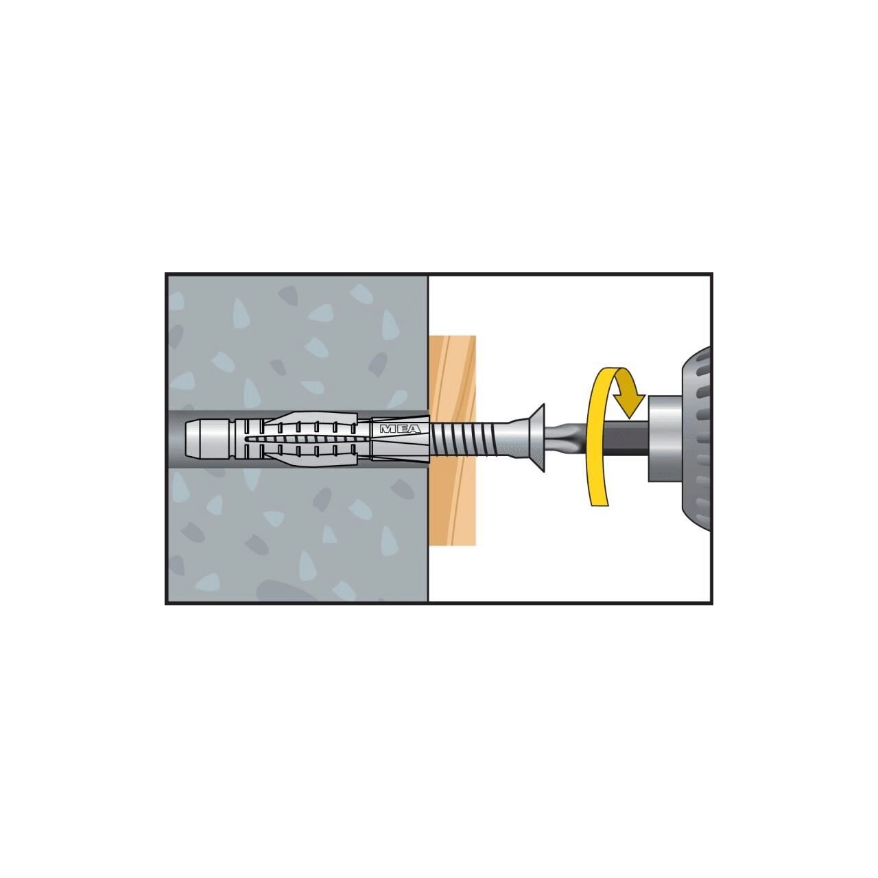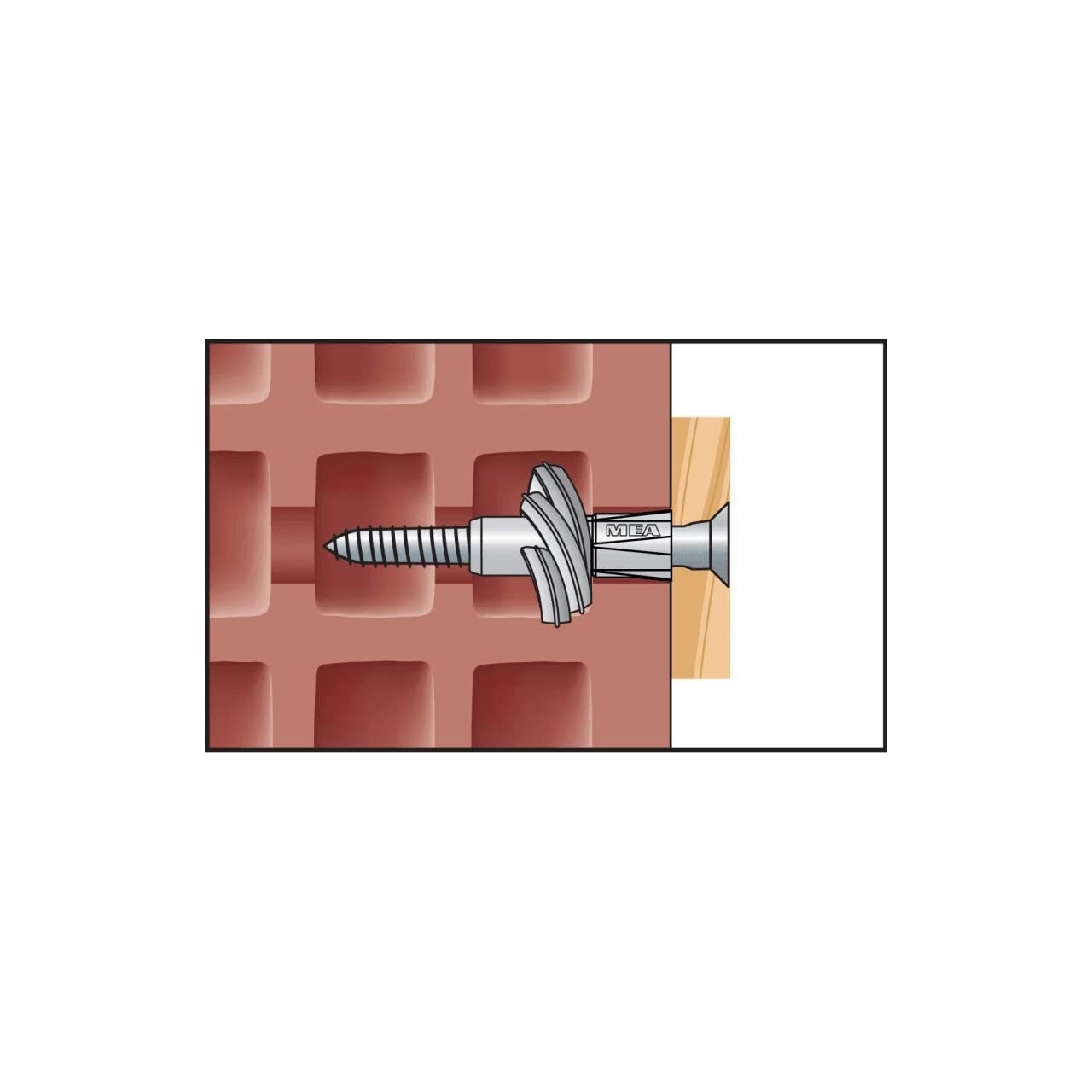 În materialele de construcție solide, diblul universal cu expandare de trei ori, se extinde în gaura de foraj.