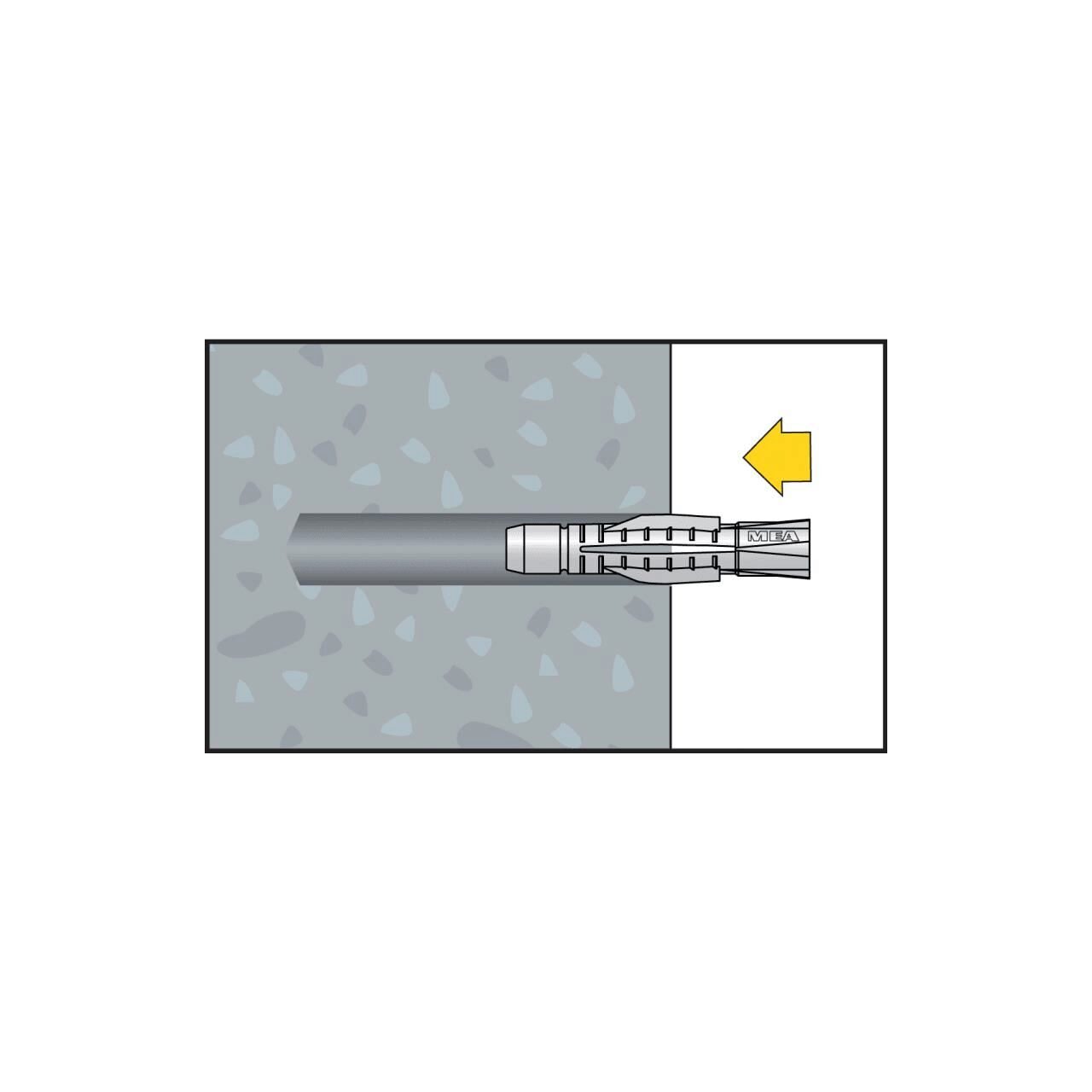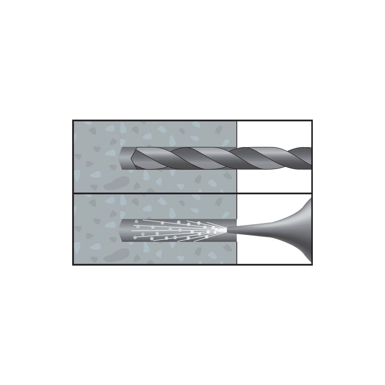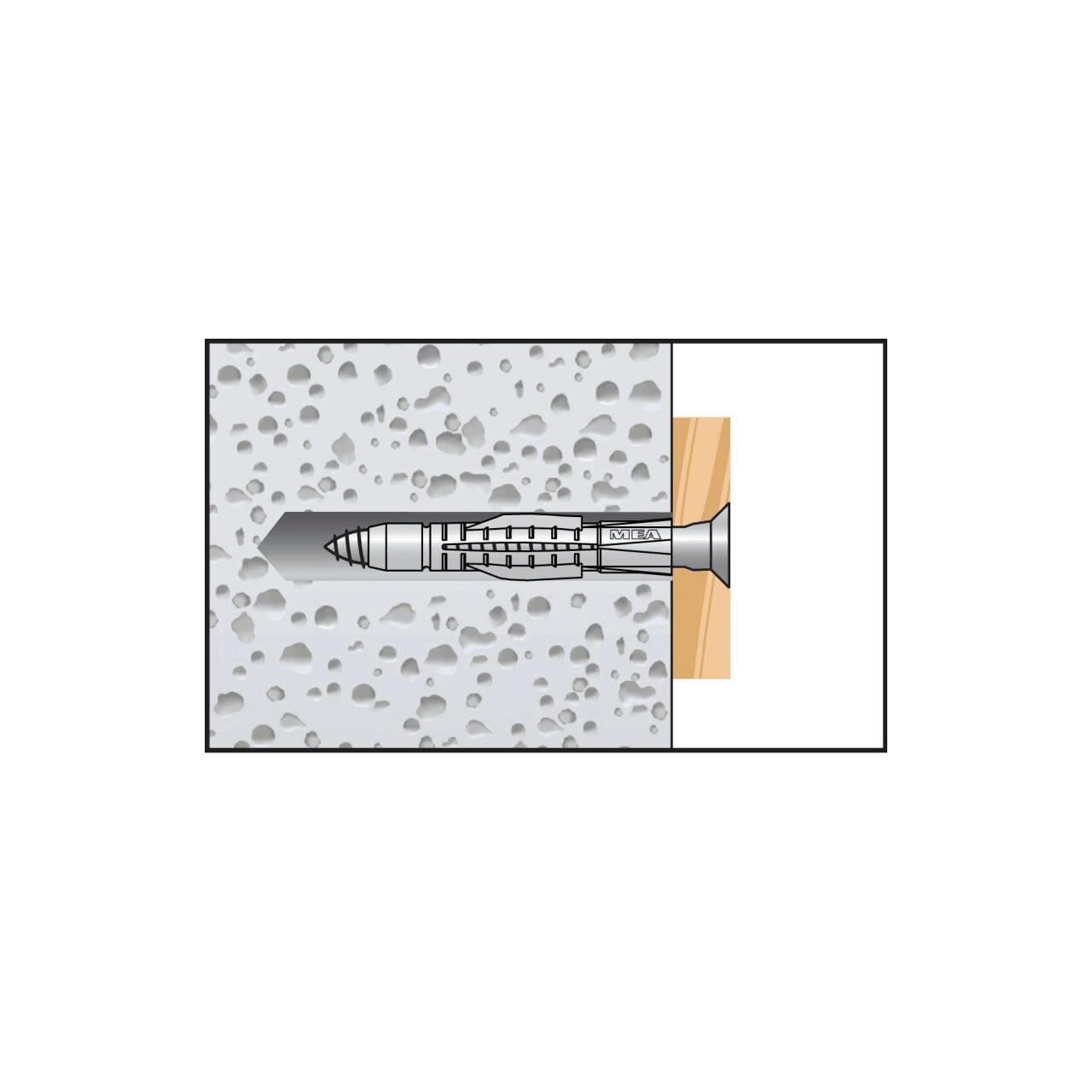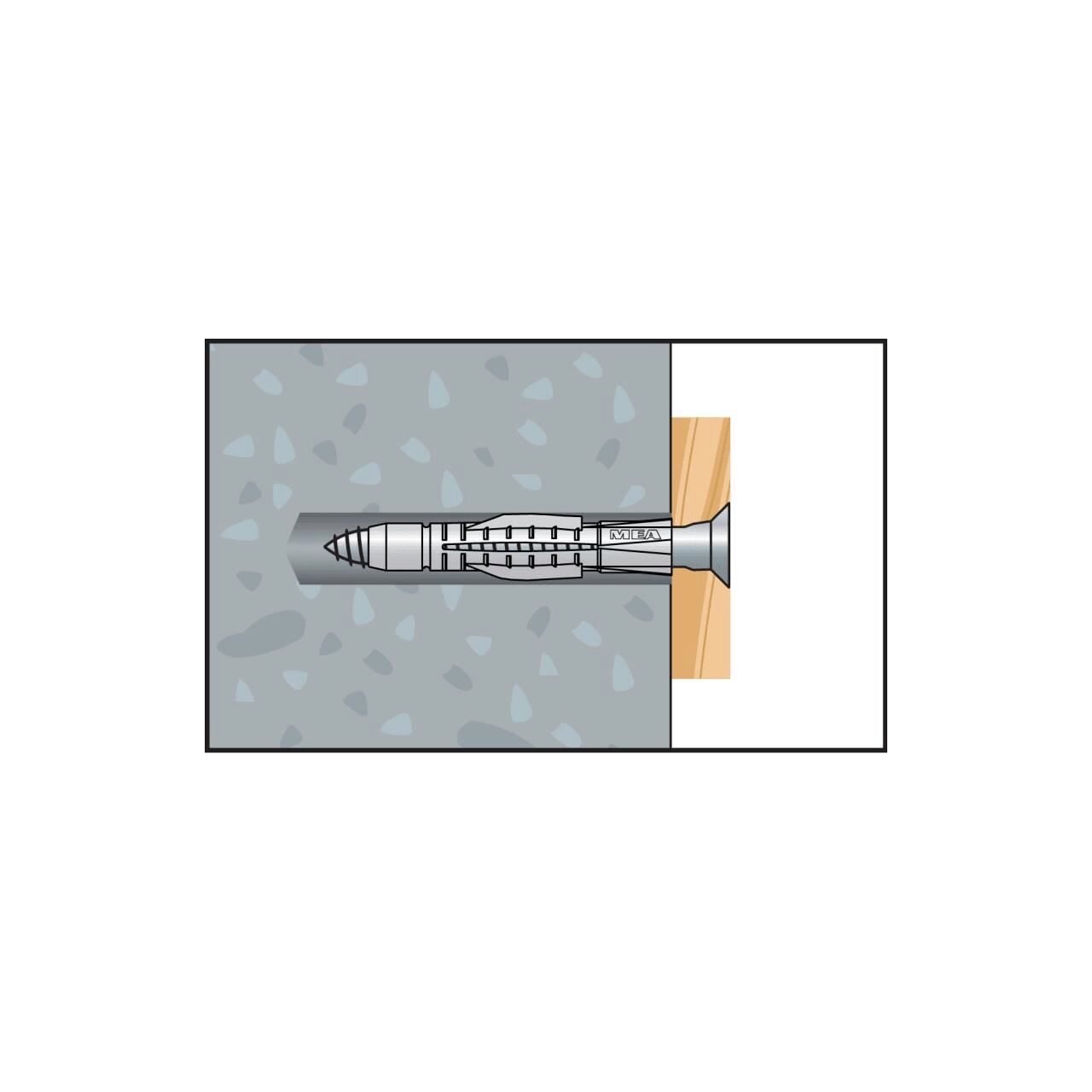 În materialele de construcție solide, diblul universal cu expandare de trei ori, se extinde în gaura de foraj.