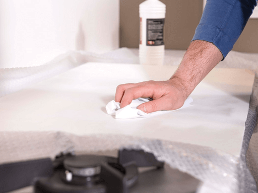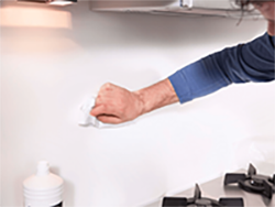 Curățați peretele îndepărtând praful și grăsimea. Ștergeți și clătiți bine înainte de a trece la pasul următor.