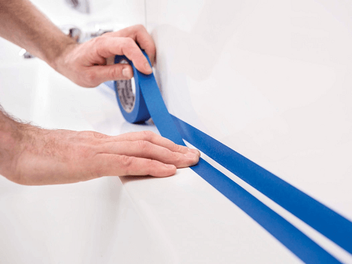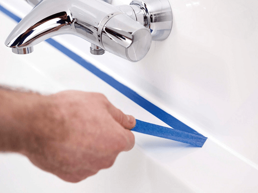 Aplică banda de mascare pe cada de baie și pe perete, la aproximativ 3 mm de centrul îmbinării.