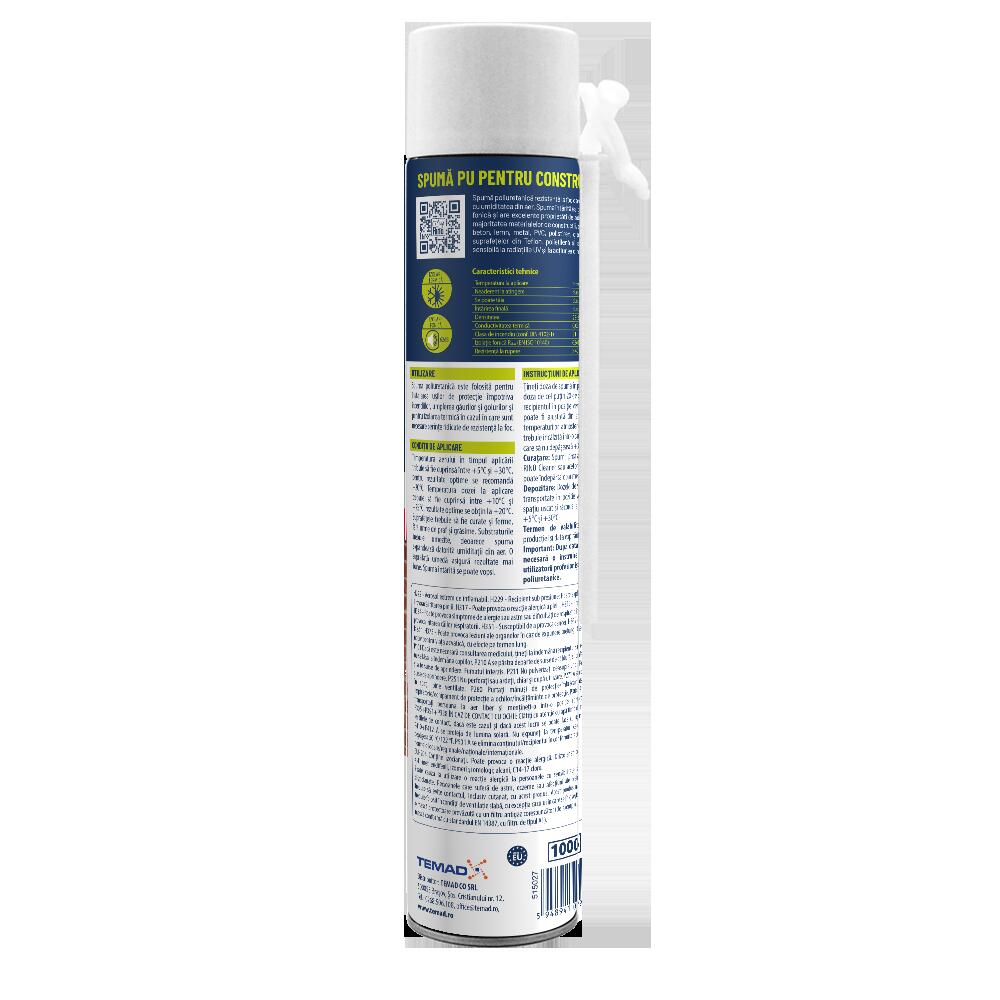 - Spuma întărită asigură o bună izolare termică și fonică și are excelente proprietăți de adeziune.