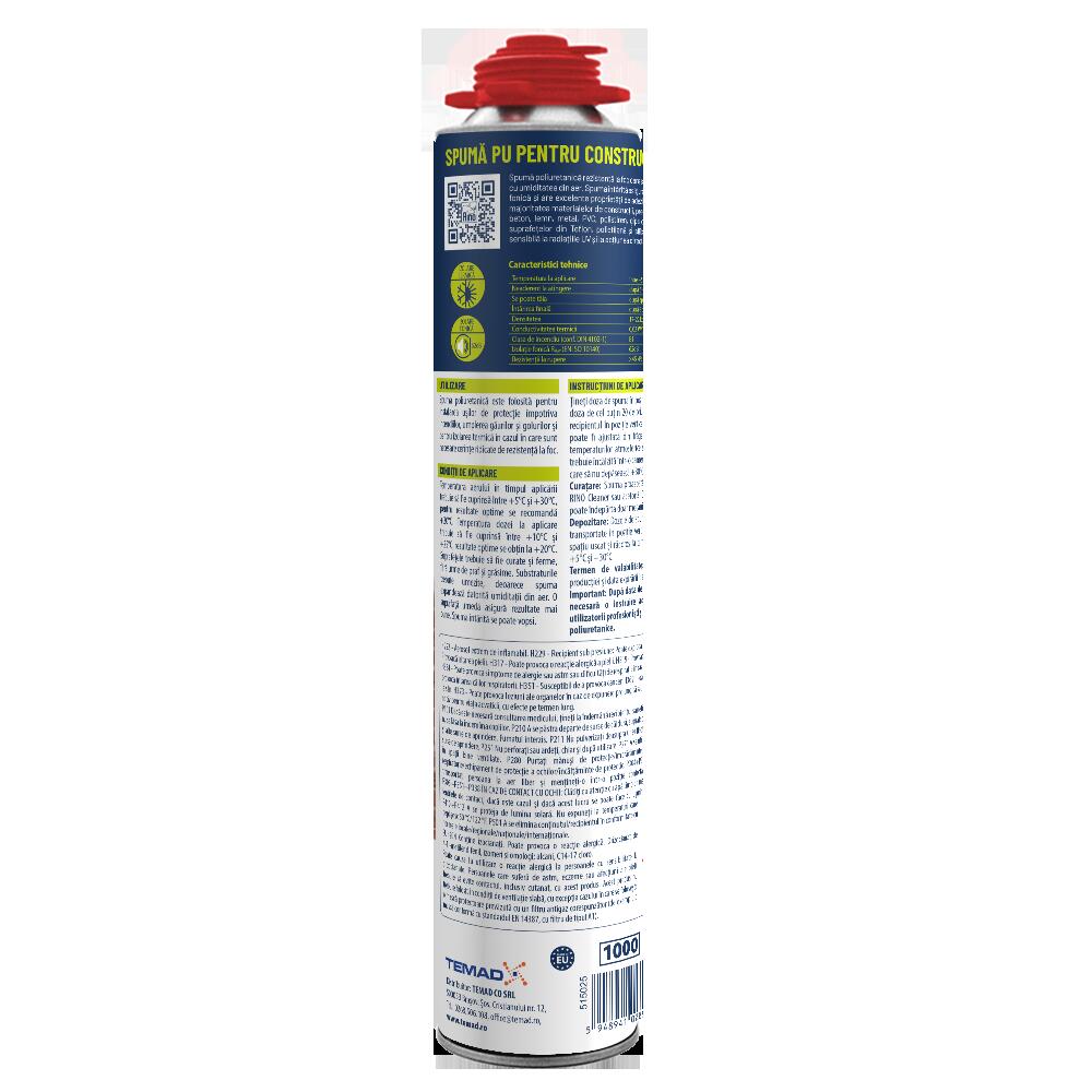 - Spuma întărită asigură o bună izolare termică și fonică și are excelente proprietăți de adeziune.