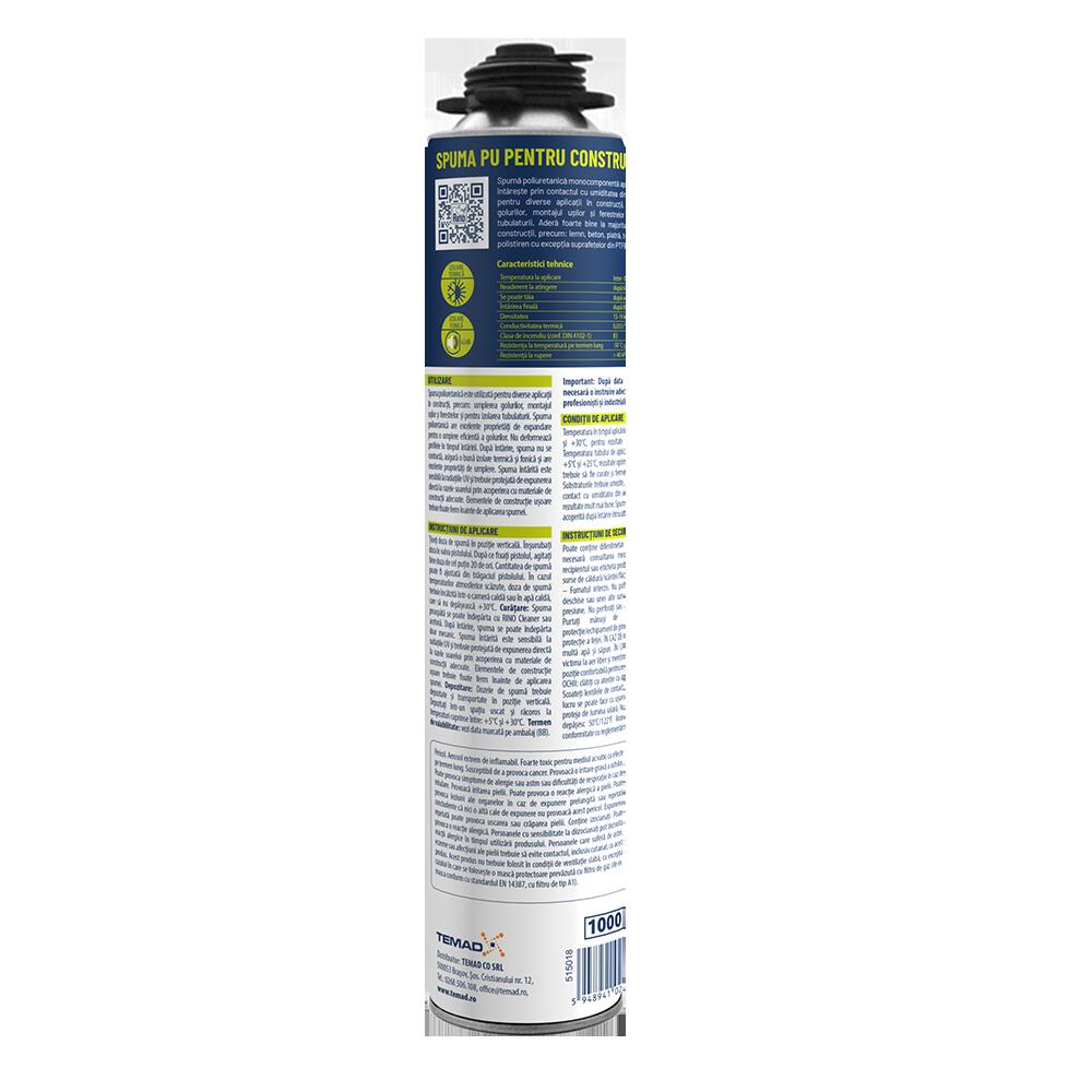 - Spuma întărită asigură o bună izolare termică și fonică și are excelente proprietăți de fixare și montaj.