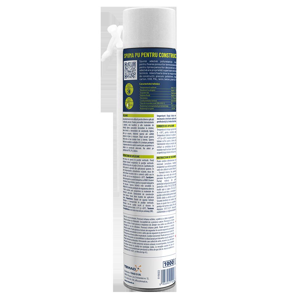 Spumă adezivă poliuretanică monocomponentă pentru fixarea plăcilor de izolație din polistiren și/sau vată bazaltică în timpul izolației termice a clădirilor.