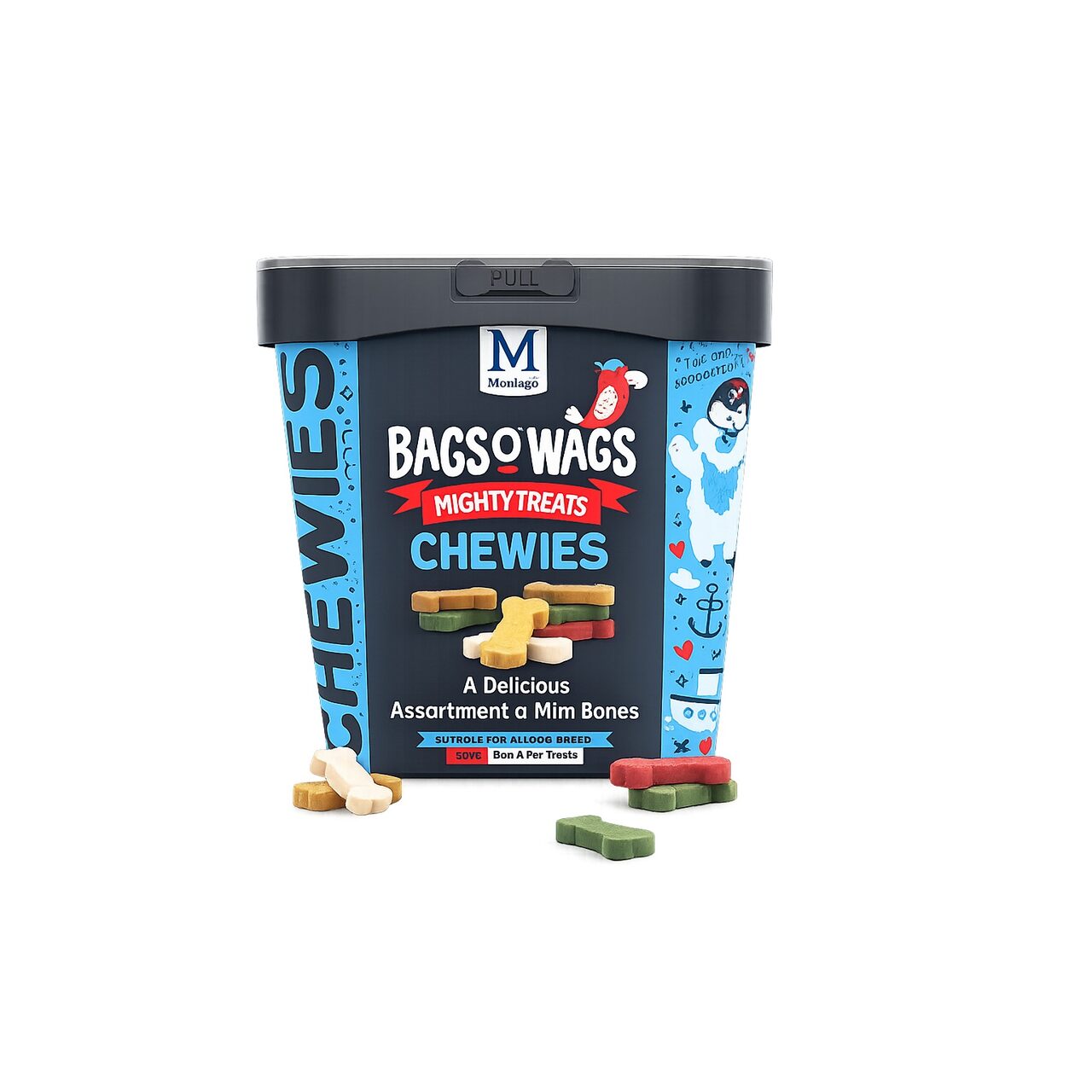 Notă: Recompensele Bags o’ Wags sunt gustări și nu înlocuiesc o hrană completă și echilibrată.