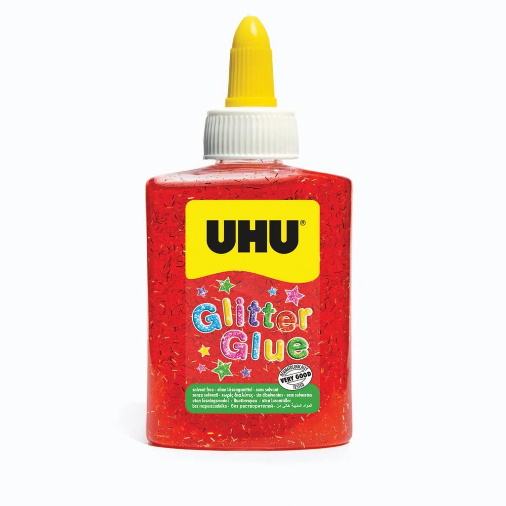 Adeziv colorat cu particule de sclipici UHU Glitter Glue, roșu, 90g