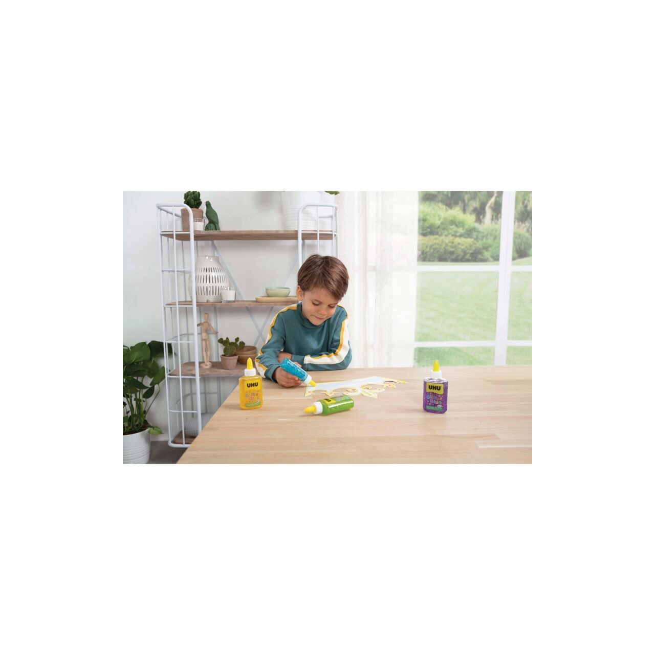 Adeziv colorat cu particule de sclipici UHU Glitter Glue, verde, 90g
